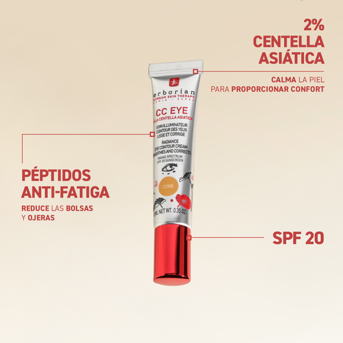 Su acción correctora atenúa de forma natural la apariencia de ojeras y bolsas. La fórmula, que incorpora tecnología coreana, contiene pigmentos encapsulados que se funden con la piel, unificando el tono en el contorno de los ojos con un acabado muy natural. La zona del contorno se ve más luminosa y fresca. CC EYE hidrata y ayuda a suavizar las arrugas y líneas de expresión para una mirada mas descansada y revitalizada.