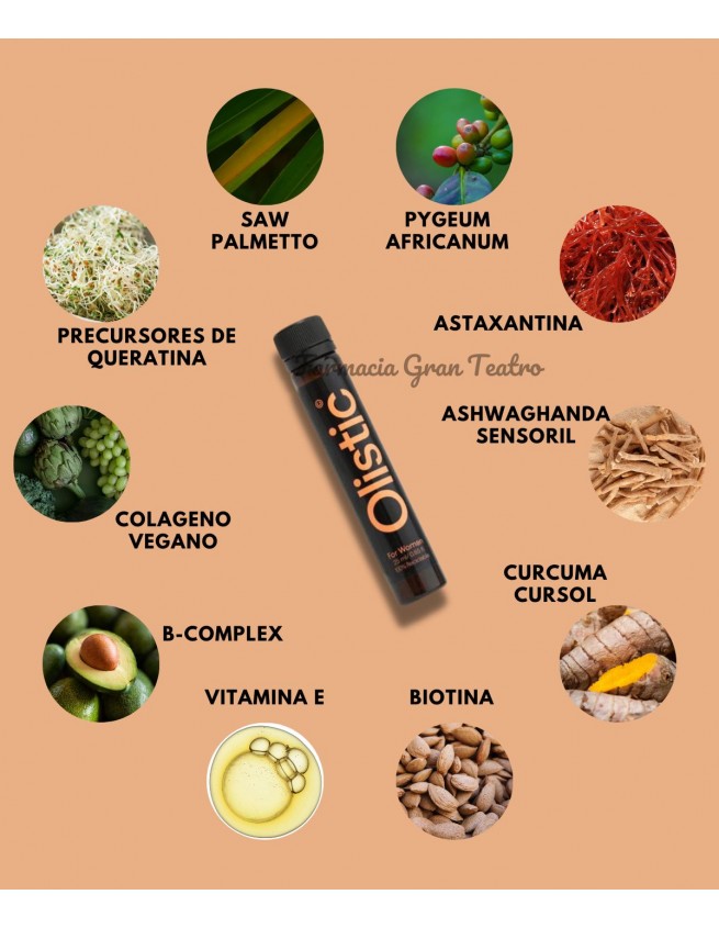 Complemento alimenticio bebible con más de 30 ingredientes naturales que nutren y protegen el cabello, favoreciendo su mantenimiento y crecimiento normal en mujeres.